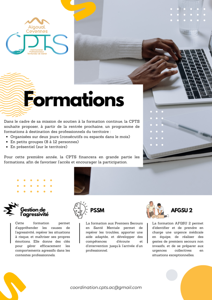 Nous souhaitons proposer aux professionnels adhérents des formations qui seront, en partie ou totalement, financées par la CPTS.